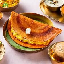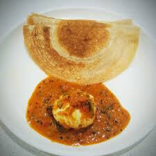 A crisp, golden Dosa served alongside and aromatic Egg curry, slow-cooked with traditional spices for tender, flavorful bites.