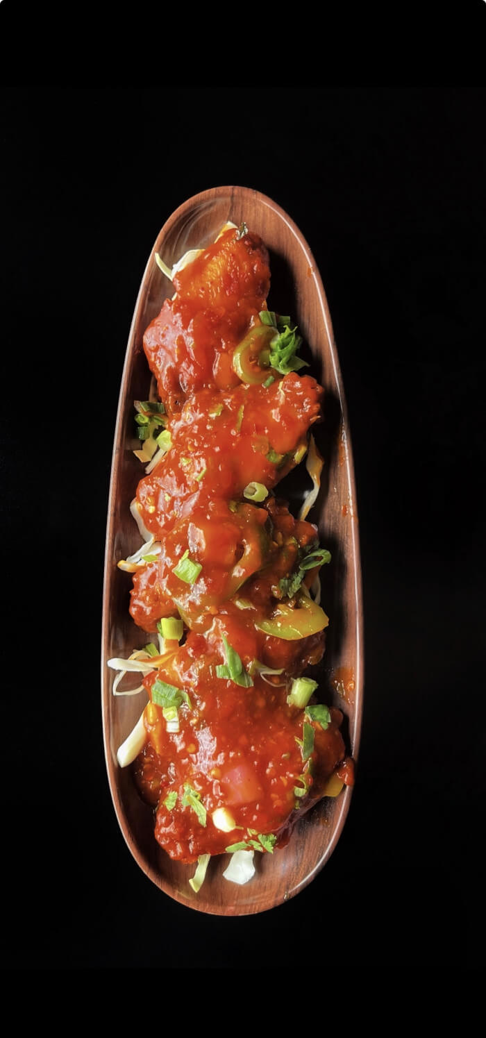 Perfect combination of hot and spicy dish made with our in house chilli sauce.
